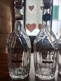 Set di 4 bottiglie vuote di Purity Vodka. - Design unico e distintivo. - Ideali per collezionisti o come elementi decorativi.