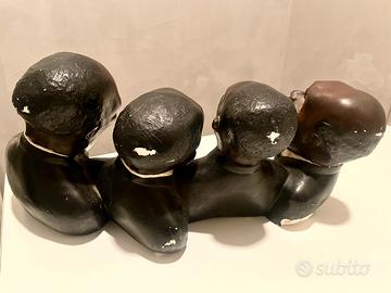 4 busti cantanti neri in gesso, qualche piccola imperfezione che non inficia la bellezza dell’oggetto H 19 cm L 40 cm