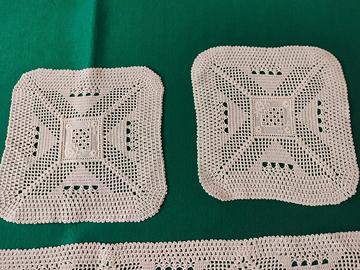 4 CENTRINI fatti a mano all’uncinetto colore PANNA misure : 1 grande cm 56/29 3 piccoli cm 18/18, uno ha un disegno leggermente diverso