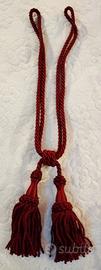 4 cordoni fermatende bordeaux con fiocco. Lunghezza circa 60 cm (regolabile); lunghezza fiocco 14cm; spessore cordone 10mm. Fatti realizzare in sartoria, perfetti.