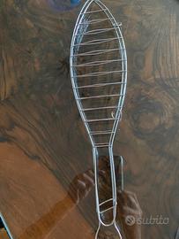 Utilissimo accessorio da barbecue per grigliare il pesce realizzato in acciaio inossidabile di alta qualità per una lunga durata e una facile pulizia. Comoda chiusura con un anello in metallo alla base del manico che facilita la cottura del pesce così che girando la griglia il pesce non cade sulla brace.