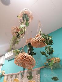 4 Lampadari ornamentali finti, appesi al soffitto in bambu’ altezza nell’insieme 120cm x 60 cm. circa. Prezzo 40 euro Venire a vedere a Cervia , tutte le mattine escluso domenica.
