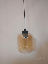 4 lampade a sospensione in vetro; 2 trasparenti e 2 ambra