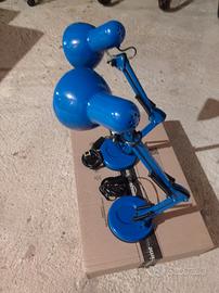 due lampade da scrivania in metallo color rosso, e due color blu chiaro