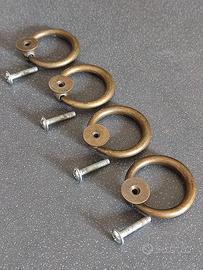 Quattro maniglie snodate tonde in ottone per mobili antichi. lunghezza: 4,8 cm diametro: 4 cm peso cadauno: 25 g