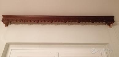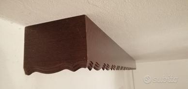 Set composto da 4 mantovane per tende, marca Arcuati, in legno scuro lavorato (2 pezzi di un modello e 2 pezzi dell’altro, stessa misura).