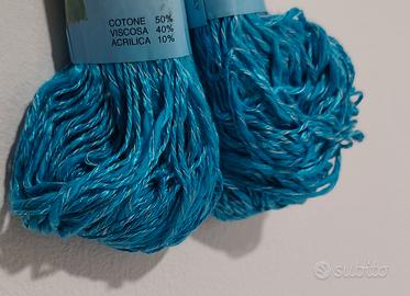 Quattro matassine di filato morbidissimo. Bel tono lun pò lucido di turchese. Disponibili altri gomitoli