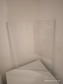 4 mensole in vetro spessore 8 mm, perfette, ottime da inserire in qualche nicchia o angolo della vostra abitazione, tipo vetrinetta, complete di supporti in acciaio inox e viti. Misure cm 28 x 36,8. Prezzo originald di acquisto: 30 Euro al pezzo! Prezzo leggermente trattabile. Occasione.