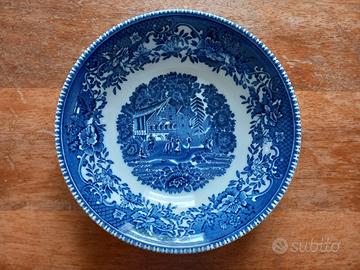 4 piatti piccoli fondi (per macedonia o aperitivi) in ceramica inglese serie "Avon cottage" prodotti dalla fabbrica Enoch Wedgwood Ltd. fra il 1965 ed il 1980, in condizioni perfette pari al nuovo, diametro cm.15, profonde cm.4.