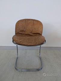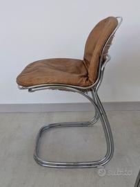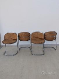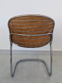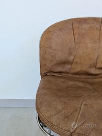 Set di 4 poltroncine imbottite disegnate da Rinaldi per Rima. Imbottitura in cuoio cognac, struttura in acciaio. Comode, compatte, moderne. Alcuni segni dovuti al tempo nell'imbottitura, struttura in ottime condizioni.