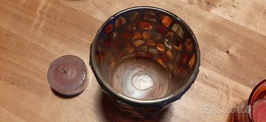 set di 4 bellissimi porta candela in vetro, 3 in vetro a mosaico e 1 liscio, arancione,in ottime condizioni, come da foto.