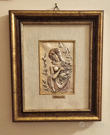 Bassorilievo in argento raffigurante le 4 stagioni.Autore Francoise Lepetit in ottime condizioni ,misura del bassorilievo 10×15 ,mentre la misura della singola cornice 26×31.