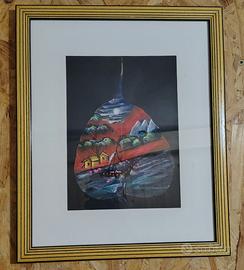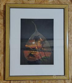 N° 4 Quadri foglie dipinte raffiguranti paesaggi esotici. Venduti preferibilmente in unica soluzione. Misure: 28.5x34.5 cornice 21x15 dipinto