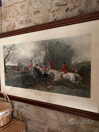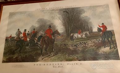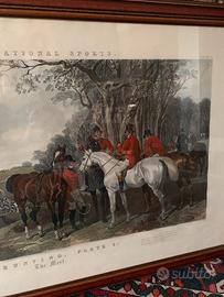 4 quadri grandi a tema Caccia alla Volpe Inglese: Fores’s National Sports Fox Hunting Plate 1 The Meet; Plate 2 The Find; Plate 3 The Run; Plate 4 The Kill; bellissimi, incorniciati; misure 137X90 cm. Stupendi per sala Ristorante.
