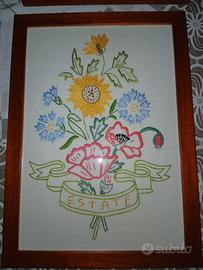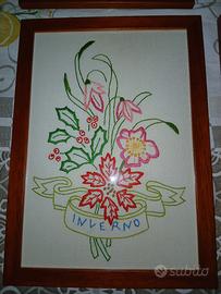 Bellissimi quadri con ricamo a mano, raffiguranti le quattro stagioni. Sono realizzati su tela di lino e incorniciati in legno.