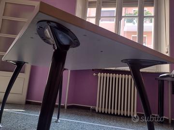 Tavoli molto versatili, per pranzo/lavoro o scrivania, costituito da un piano in laminato antigraffio col. grigio applicato su pannello MDF. Gambe autoportanti in alluminio e verniciatura lucida col. antracite, piedini regolabili in alluminio opaco. Dim: uno da 140 e tre da 160x80 h. 72 cm. Finiture eccellenti, come nuovi. Vendibili anche separatamente a 150 € l'uno