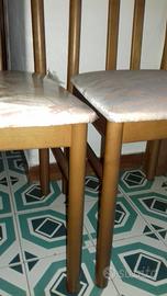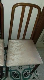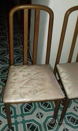Vendesi 4 sedie anni 80/90 in buone condizioni estetiche generali, bel salde con qualche segnetto fisiologico dovuto al tempo. Ne ho fotografate solo 2 perché le altre 2 hanno condizioni pressoché identiche. Nella foto una delle 2 sedie ha ancora la plastichina protettiva della seduta (dalla foto potrebbe sembrare un difetto, ma in sostanza non lo è ). Dimensioni 45 (parte seduta anteriore), 37(parte seduta posteriore)x40x95 (h).