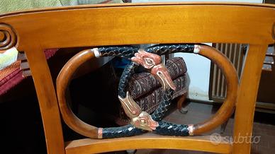 4 sedie in stile, pari al nuovo. Legno scolpito e cesellato con motivo colorato. Stile viennese. Dimensioni: cm 87 altezza x 48 larghezza seduta x 42 profondità seduta. Eventuale spedizione da valutare.