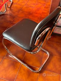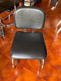 4 sedie Cantilever Bauhaus Colore Nero in acciaio ed ecopelle anni ‘70 vintage. Ancora in buono stato, seduta molto confortevole.