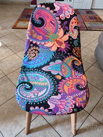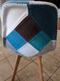 Vendo n. 4 sedie in tessuto patchwork colore bianco, azzurro, grigio e legno con relative coprisedia per protezione. In ottime condizioni.