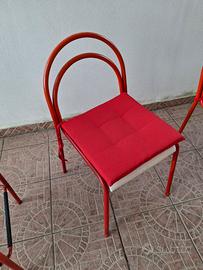 Articoli in buone condizioni. La struttura è in metallo color rosso. Solo 2 sedie hanno la seduta un po' rovinata ma viene coperta dai cuscini.