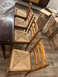 4 sedie con sedile impagliato