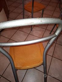 vendo 4 sedie da cucina usate ma in buone condizioni, seduta in legno e corpo in metallo ( eventulmente da riverniciare), perche' in dei punti e' venuta via la vernice(come si vede da foto), no spedizione.