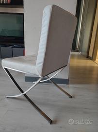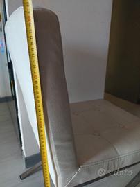 Vendesi 4 sedie da soggiorno imbottite, sono color panna con gambe in acciaio satinato e rivestimento in simipelle. Sono in buone ma con l'utilizzo si sono leggermente abbassate data la forma delle gambe. Sono comunque utilizzabili (vedi altezza in foto di sedute e schienale), ma chi fosse un minimo pratico potrebbe cercare di "tirare" in minimo le gambe per ri-alzare la seduta. Disponibili solo per ritiro presso il mio domicilio.