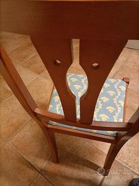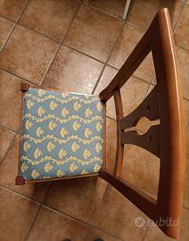 Vendo 4 sedie Del Tongo in legno massello. Il legno in ottimo stato. Alcune sedute sono da ritappezzare.