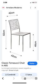 4 sedie di 2 forme diverse, bianche in plastica. Alcune foto inserite sono prese dal web. Si possono vendere anche a 2 a due, a 30 euro la coppia. Consegna a mano a Verona.