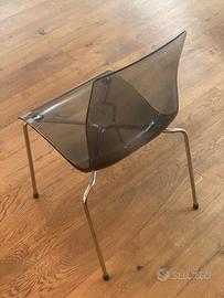 •Materiale: Seduta e schienale in materiale trasparente (policarbonato/plastica), lucido e resistente.