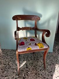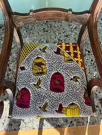 4 sedie/poltroncine in ottimo stato. Rivestite con stoffa wax ma disponibile anche copri cuscini originali color panna. Il prezzo indicato è per tutte e 4