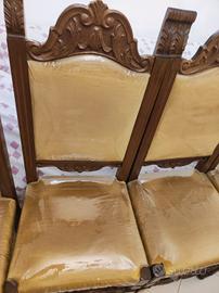 4 sedie e due poltrone in velluto stile classico fiorentino,come si vede anche sotto le sedute sono in legno la plastica ha preservato il velluto che risulta pulito(la plastica va tolta).