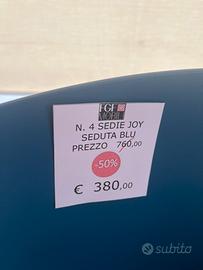 4 sedie FGF mobili, modello “joy”. Seduta blu, gamba nero. Mai usate. Vendo per chiusura attività. Trasporto entro 40 km compreso. Prezzo riferito a tutte le 4 sedie, non vendibili singolarmente.