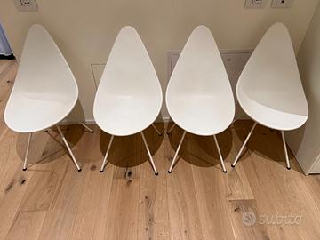 Vendo 4 Sedie Fritz Hansen Drop Chair colore bianco con rispettivi cuscini originali di colore grigio, in feltro.