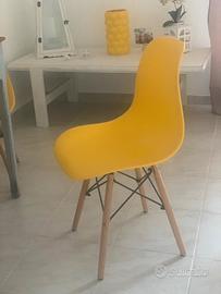 vendo 4 sedie moderne seduta con schienale plastica giallo gambe in legno.