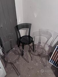 Vendo 4 sedie ikea, modello stein, due grigio trasparente e due trasparenti. Usate pochissimo. No spedizione.