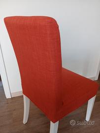 Vendo in zona Padova 4 sedie ikea (Henriksdal) in ottimo stato. Rivestimento sfoderabile e lavabile in lavatrice, facile da riposizionare, colore arancio. Le gambe della sedia presentano piccoli segni di usura, come in foto, ma facilmente ritoccabili con colore bianco.