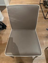 le sedie hanno 7anni, la struttura e’ perfetta ma il rivestimento in ecopelle e’ piuttosto rovinato. vanno rifoderate o coperte con coprisedia. costo da nuove 250€/cad