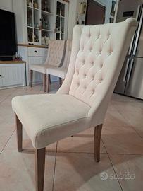Sedie imbottite trapuntatura Chesterfield. Gambe della sedia con una sobria finitura anticata Vendo 4 sedie imbottite h 104 seduta 45 cm,in buono stato da pulire ...