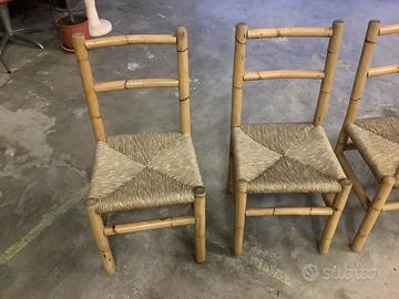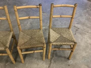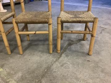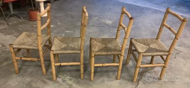 4 Sedie in bambu con seduta impagliata