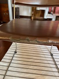 Struttura a slitta in acciaio . Sono tutte in perfette condizioni tranne la seduta di una sedia che si è rovinata nella piegatura del cuoio ma che non influisce sull’utilizzo . Il prezzo tiene conto della sedia rovinata.
