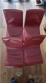 Vendo 4 sedie in ecopelle color bordeaux, usate ma ancora in buone condizioni. Struttura in metallo, rivestimento senza strappi, con alcuni segni di usura visibili sulla seduta. Design moderno e confortevole, ideali per sala da pranzo, cucina o ufficio.