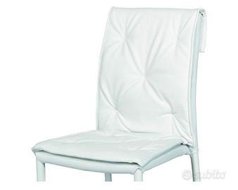 Come da titolo, vendo 4 sedie con rivestimento in ecopelle, rivestite anche le gambe che sono di metallo. Questa sedia dal design molto elegante è adatto a qualsiasi ambiente arredato in stile raffinato