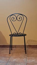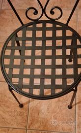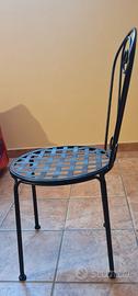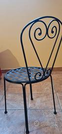 Vendo 4 sedie in ferro verniciato nero, condizioni perfette, ben rifinite nei particolari, sono state usate solo all'interno della tavernetta , non presentano alcun graffio o danneggiamento, la vernice è integra. Altezza totale cm 88, altezza seduta m 42, diametro cm 42. Ideali x veranda o giardino. Considerando che si tratta di sedie in ferro , non le spedisco , ma è consigliabile il ritiro da parte dell'acquirente.