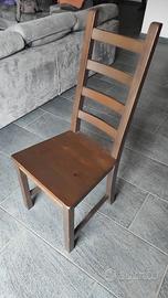4 sedie in legno particolarmente resistenti, adatte sia in cucina che in soggiorno, in ottime condizioni. Dimensioni 43x42x104 cm. Vendo a 80 euro totali