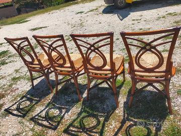 4 Sedie in legno curvo e vera paglia, tipo tonet