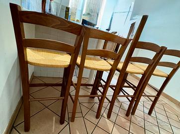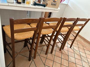 Vendo 4 sedie in legno massello con seduta di 60cm di altezza per penisola. Le sedie sono in ottimo stato La seduta è impagliata e perfetta. Sono come degli sgabelli ma con schienale e molto piu comodine belli. Ritiro a mano a carico dell’acquirente NO PERDITEMPO
