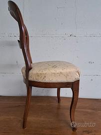 4 sedie imbottite in noce, originali fine 800, falegnameria sanissima e tappezzeria in ottimo stato. Misure 50x45x90. Vendo in blocco.