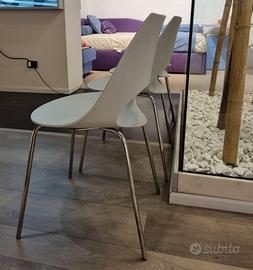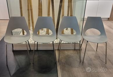 Realizzate con scocca in polipropilene grigio chiaro e struttura in acciaio cromato, leggere ma robuste.